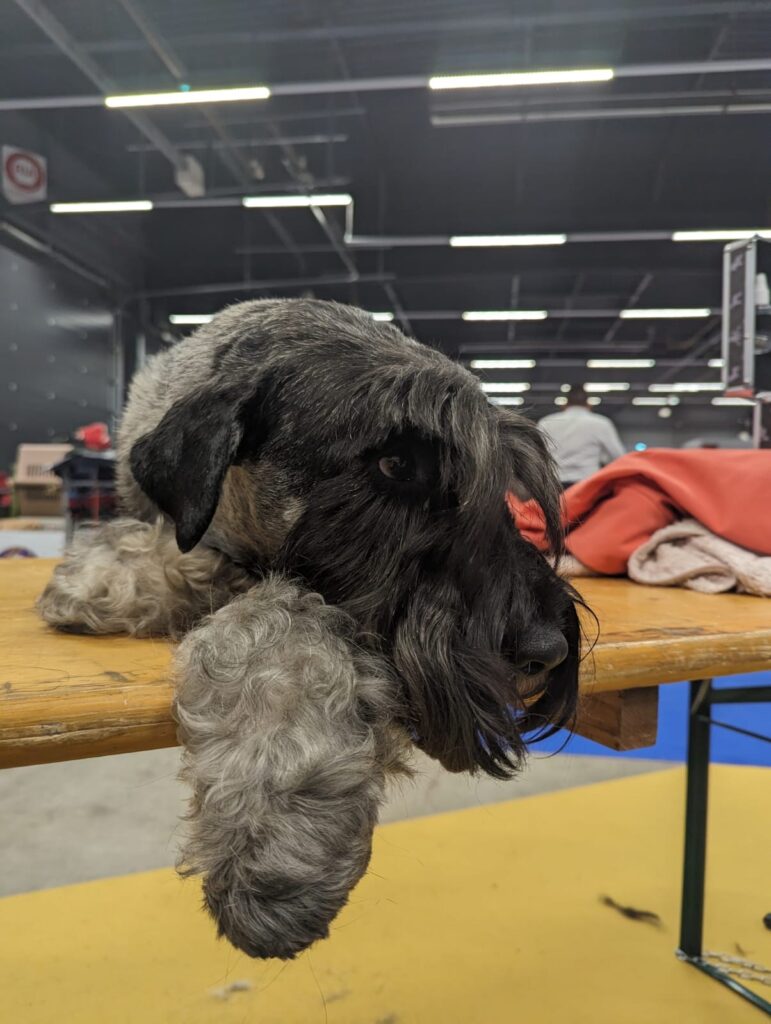 Le Schnauzer moyen est une race de chien robuste, intelligente et énergique qui se distingue par sa barbe caractéristique et ses sourcils broussailleux. Le Schnauzer moyen a une silhouette carrée et compacte. Sa tête est rectangulaire avec un museau fort et une barbe distinctive. Les yeux sont foncés, ovales et expressifs. Les Schnauzers moyens sont de taille moyenne, avec une hauteur au garrot variant généralement entre 45 et 51 cm. Les mâles ont tendance à être légèrement plus grands que les femelles. Le poids moyen d’un Schnauzer moyen est d’environ 14 à 22 kg. La robe du Schnauzer moyen est dense et dure, avec une sous-couche plus douce. Les couleurs acceptées incluent le noir, le poivre et sel. Traditionnellement, la queue et les oreilles étaient coupées mais cette pratique est aujourd’hui interdite en Europe. Les Schnauzers moyens sont connus pour leur intelligence, leur vivacité et leur caractère intrépide. Ils sont souvent décrits comme étant alertes, curieux et plein d’énergie. Ils ont une personnalité forte et peuvent être protecteurs envers leur famille. Ces chiens sont polyvalents et peuvent être formés à diverses tâches. Ils sont souvent utilisés comme chiens de compagnie, mais ils excèdent également dans des domaines tels que l’agilité, l’obéissance et même en tant que chiens de garde. En général, les Schnauzers moyens sont considérés comme une race en bonne santé. Le toilettage du schnauzer demande de la rigueur. Son poil dur nécessite d’être épilé toutes les 6 à 8 semaines maximum. Il faut également entretenir sa longue barbe et ses sourcils caractéristiques de la race !